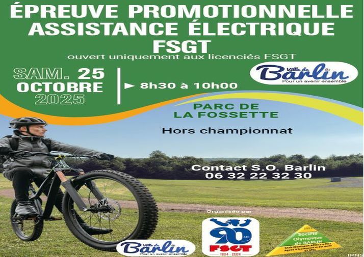 Samedi 25 octobre 2025 de 8h30 à 10h00 au parc de La Fossette une épeuve VTTVAE ouverte uniquement aux liencié.esFSGT. Hors championnat